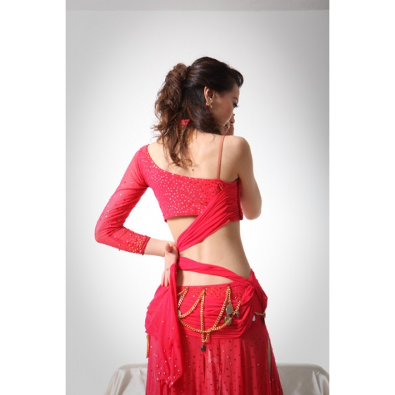 • 紅單袖長裙